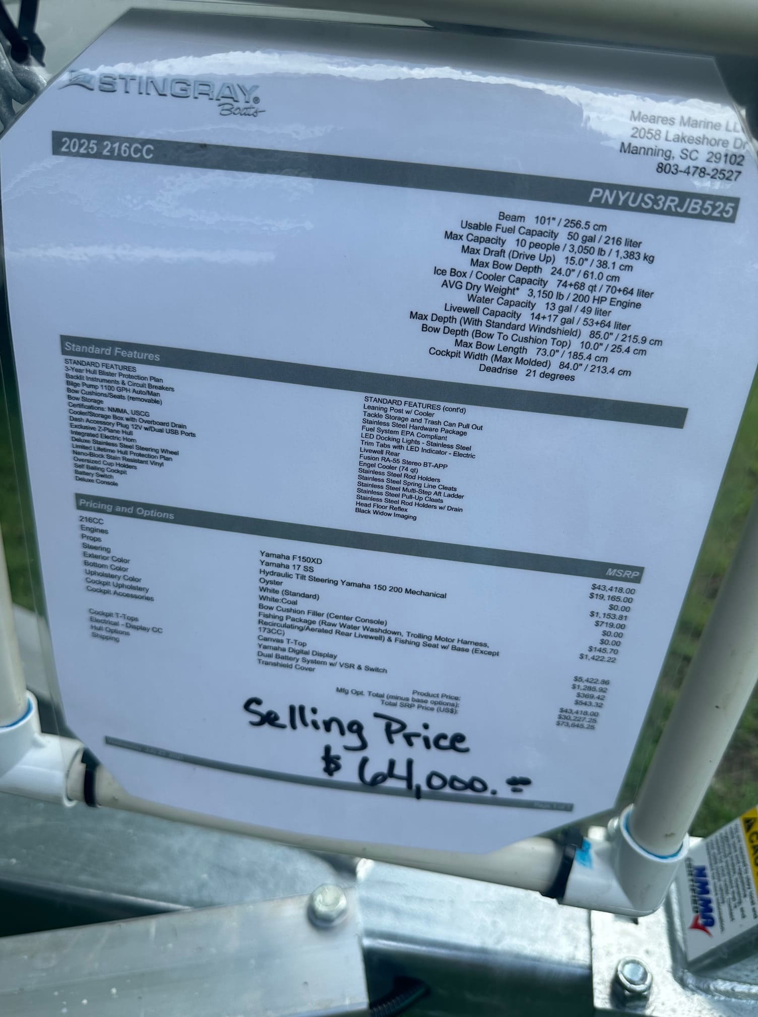 2025 STINGRAY 216CC YAMAHA F150XC EZ-LOADER TRAILER